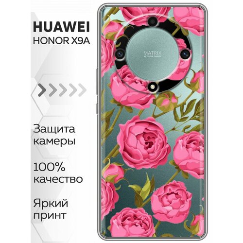 Полупрозрачный дизайнерский силиконовый чехол для Хонор Х9а / Huawei Honor X9a Цветочный принт