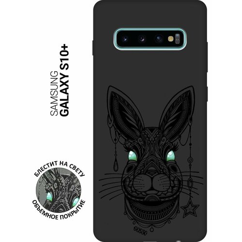 Ультратонкая защитная накладка Soft Touch для Samsung Galaxy S10+ с принтом "Grand Rabbit" черная