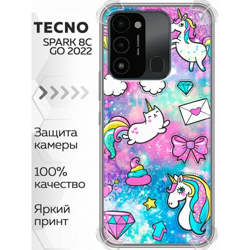 Дизайнерский силиконовый с усиленными углами чехол для Текно Спарк Го 2020 / Tecno Spark Go 2022 Единороги