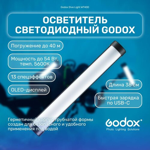 Осветитель светодиодный Godox Dive Light WT40D для подводной съемки, водонепроницаемый видеосвет трубчатый, мобильный свет для фото и видео