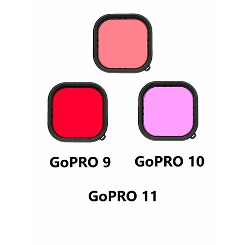 Фильтры для подводной съёмки для GoPro 8 9 10 11 12 : красный red, пурпурный magenta, фиолетовый purple, 3 шт.