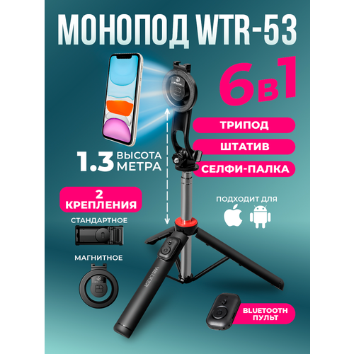 Штатив для телефона, 132см, монопод, селфи-палка, Bluetooth-пульт, 2 крепления, подставка, стабилизатор, держатель