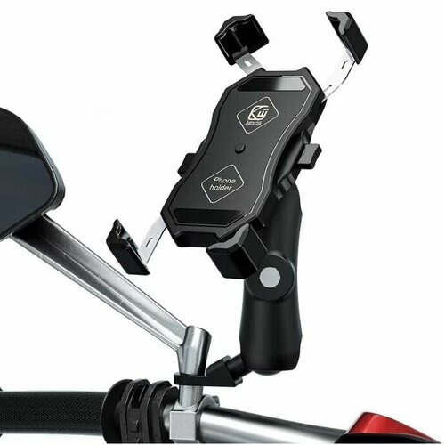 Держатель телефона Kewig M11-D2 12-90V с беспроводной зарядкой Qi 15W / USB Type C крепление под зеркало Темно-серый