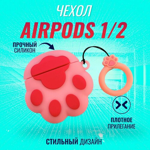 Чехол для наушников AirPods 1 и 2 / Аирподс 1 и 2 версии (Лапка розовая)
