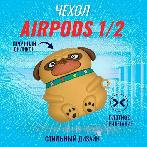 Чехол для наушников AirPods 1 и 2 / Аирподс 1 и 2 версии (Мопс)