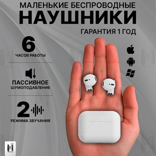 Наушники беспроводные для iPhone и Android с микрофоном, блютус, маленькие, белые