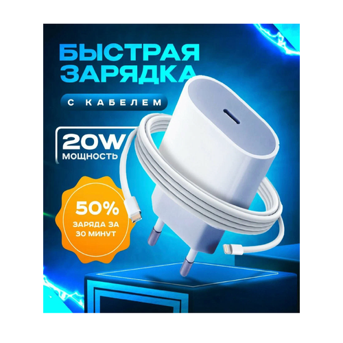 Зарядное устройство с кабелем 1м разъём Type-C - Lighting для iPhone с адаптером 20W быстрая зарядка в фирменной коробке