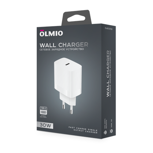 Зарядное устройство для смартфонов и планшетов с быстрой зарядкой 30 Вт, Olmio