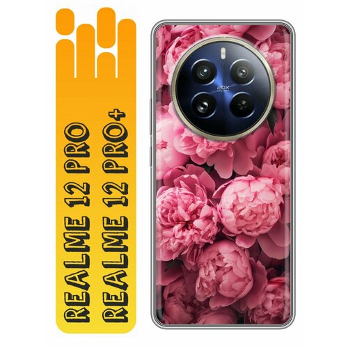 Чехол для Realme 12 Pro, Realme 12 Pro Plus с принтом цветы пионы (Реалми 12 Про, Реалми 12 Про Плюс)