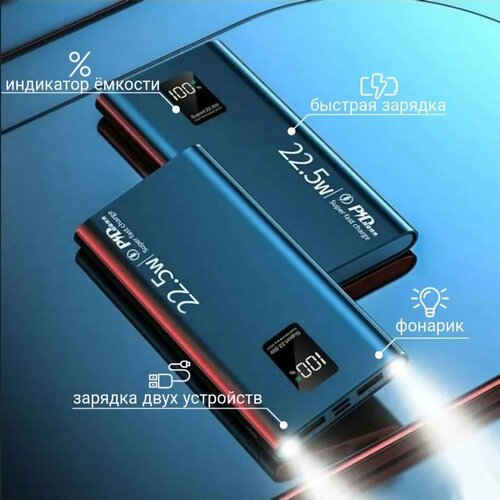 Портативный аккумулятор 20000 mAh/22.5W Черный, с дисплеем Power Bank