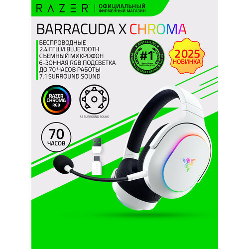 Игровые наушники Razer Barracuda X Chroma (White) Беспроводные и проводные, 2.4ГГц, Bluetooth, USB, RGB подсветка, 7.1 Surround Sound, полноразмерные, кардиоидный микрофон