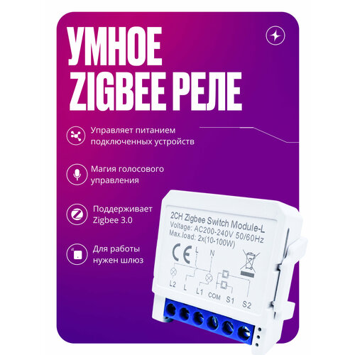Умное реле Zigbee 3.0, контроллер на 2 канала, работает без нуля с конденсатором, умный дом