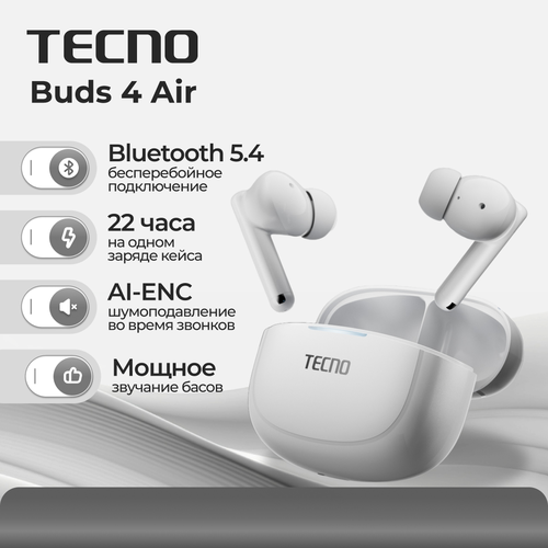 Беспроводные наушники TWS TECNO Buds 4 Air, White