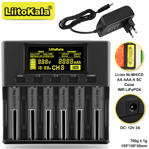LiitoKala Lii-S6 l Многофункциональный Ni-MH аккумулятор Универсальный 6 слот Smart 18650 литиевый аккумулятор 3.7V/4.2V LCD зарядное устройство 26650