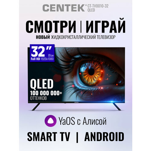 Телевизор 32 дюймов CENTEK CT-TV0010-32 QLED экран/ Full HD/ SMART YaOS/ Алиса/ Wi-Fi/ Bluetooth/