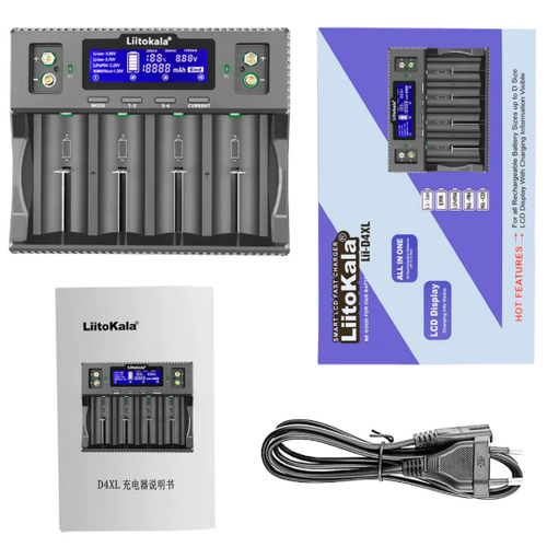 Зарядное устройство Liitokala Lii-D4XL ( для 4-x 32700-10440 , Li-ion/NiMh, ток заряда 1/2A, LCD, показывает вольтаж, ёмкость)