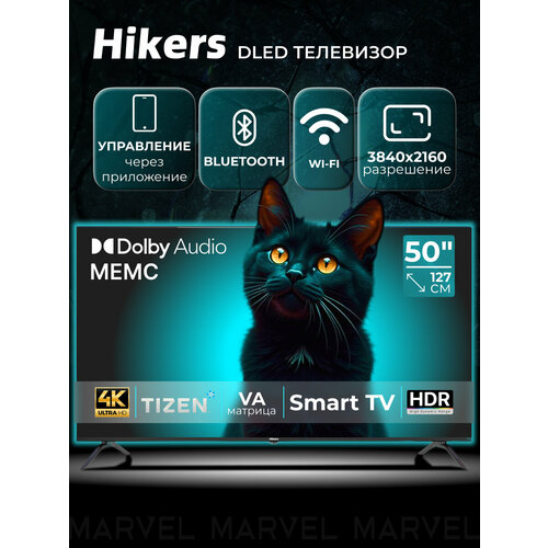 Телевизор 50" со Смарт ТВ Hikers 50HTU01 4K UHD, Smart TV, Wi Fi, Bluetooth, TIZEN OS, MEMC, Dolby Audio, HDR, DLED