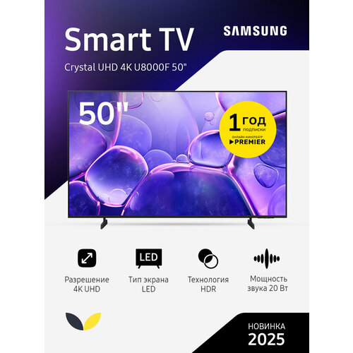 Телевизор LED Samsung 50" UE50U8000FUXRU 4K Ultra HD 60Hz DVB-T2 DVB-C DVB-S2 USB WiFi Smart TV 2025