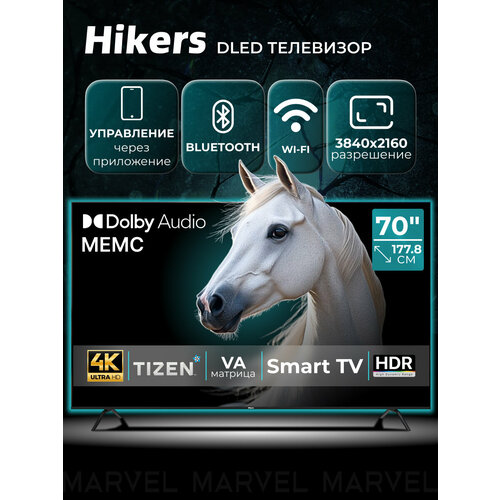 Телевизор 70" со Смарт ТВ Hikers 70HTU01 4K UHD, Smart TV, Wi Fi, Bluetooth, TIZEN OS, MEMC, Dolby Audio, HDR, DLED