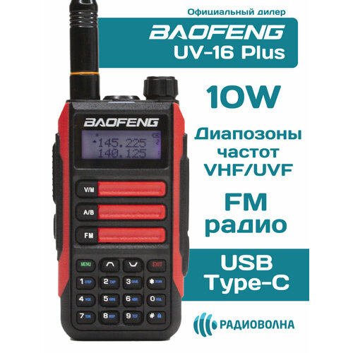 Радиостанция Baofeng UV-16 Plus 10w красная (USB type-C, 3 режима мощности, 1800 mAh)
