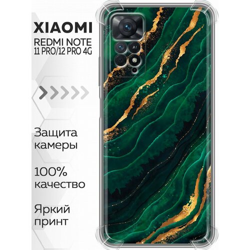 Дизайнерский силиконовый с усиленными углами чехол для Сяоми Редми Ноут 12 Про 4Ж / Xiaomi RedMi Note 12 Pro 4G Мрамор зеленое золото