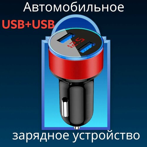 Зарядное авто USB AOAT, с подсветкой, для 2 устройств, с вольтметром, 3,1А