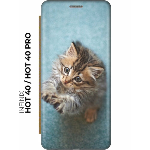Чехол-книжка на Infinix Hot 40 / Hot 40 Pro / Инфиникс Хот 40 / Хот 40 Про с рисунком "Котёнок на голубом" золотой