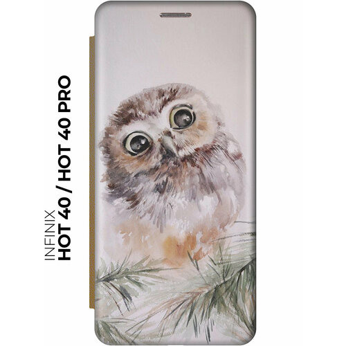 Чехол-книжка на Infinix Hot 40 / Hot 40 Pro / Инфиникс Хот 40 / Хот 40 Про с рисунком "Совенок" золотой
