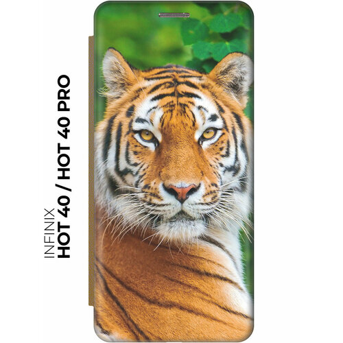 Чехол-книжка на Infinix Hot 40 / Hot 40 Pro / Инфиникс Хот 40 / Хот 40 Про с рисунком "Портрет тигра" золотой