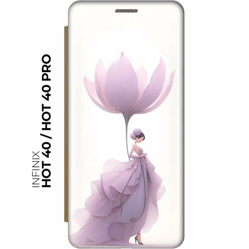 Чехол-книжка на Infinix Hot 40 / Hot 40 Pro / Инфиникс Хот 40 / Хот 40 Про с рисунком "Цветочная девушка" золотой