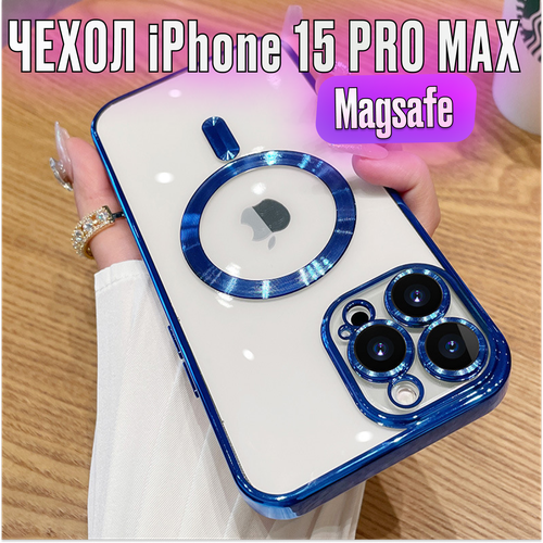 Магнитный чехол для iPhone 15 Pro Max с поддержкой MagSafe, синий орнамент