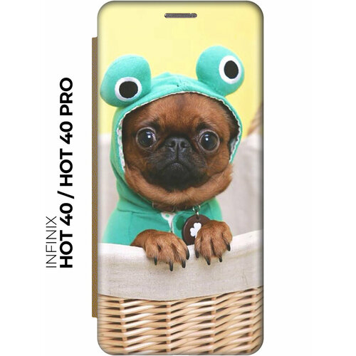 Чехол-книжка на Infinix Hot 40 / Hot 40 Pro / Инфиникс Хот 40 / Хот 40 Про с рисунком "Собака в смешной шапке" золотой