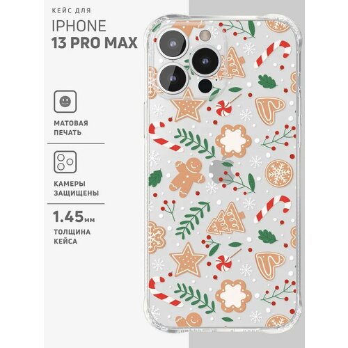Противоударный чехол на iPhone 13 Pro Max / Айфон 13 Про Макс прозрачный с принтом "Gingerbread pattern"