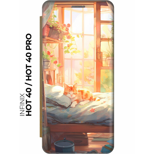 Чехол-книжка на Infinix Hot 40 / Hot 40 Pro / Инфиникс Хот 40 / Хот 40 Про с рисунком "Котик в лучах солнца" золотой