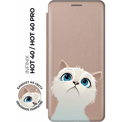 Чехол-книжка на Infinix Hot 40 / Hot 40 Pro / Инфиникс Хот 40 / Хот 40 Про с рисунком "Белый котик" золотой