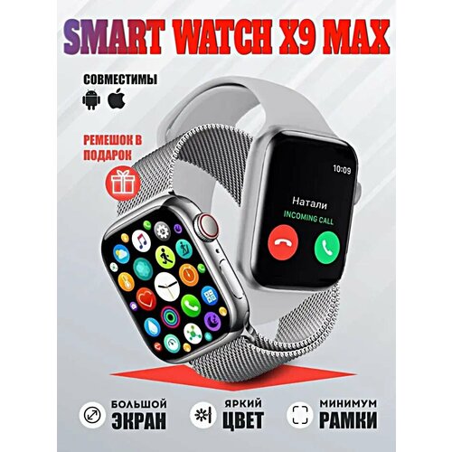 Смарт часы X9 MAX, iOS, Android, 2 ремешка, Bluetooth звонки, уведомления, 45 mm, серебристые