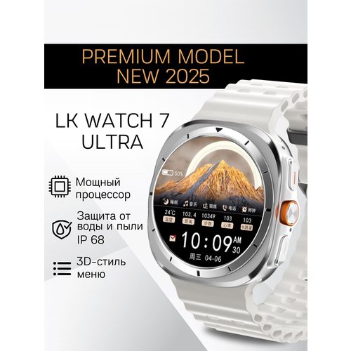 Умные часы LK Watch7 Ultra, New 2025 RU, последняя версия, 47mm, серебро белый, мужские, galaxy