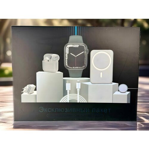 Подарочный набор 6в1 - Смарт Часы S9 Max, A.Pods 3, MagSafe внешний аккумулятор, MagSafe Зарядка, Адаптер 20W, Кабель Lighting, Совместим с iOS и Android