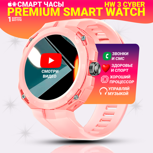 Смарт часы HW3 Cyber, Умные часы PREMIUM Smart Watch iPS, iOS, Android, Розовые