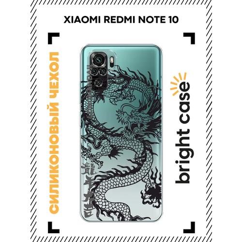 Чехол на Xiaomi Redmi Note 10/Note 10S/Poco M5s / Сяоми Редми Нот 10/Нот 10S/Поко M5s с принтом Черный дракон, прозрачный