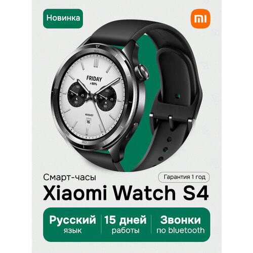 Смарт-часы Xiaomi Watch S4 Black (РСТ), 5 ATM влагозащита, до 15 дней работы, управление жестами, AMOLED