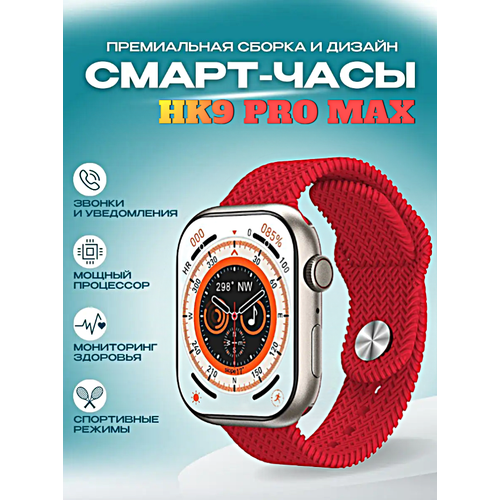 Cмарт часы HK9 PRO MAX Smart Watch PREMIUM Series, LSD дисплей, iOS, Android, Bluetooth звонки, Уведомления, Шагомер, Красный