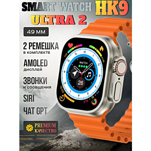 Смарт часы HK9 ULTRA 2 Умные часы PREMIUM Smart Watch AMOLED, iOS, Android, ChatGPT, Bluetooth звонки, Оранжевый