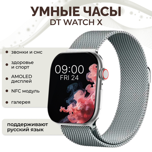 Cмарт часы DT Watch X / Умные часы 10 серия iOS Android Галерея Звонки Уведомления с металлическим ремешком, серебристые