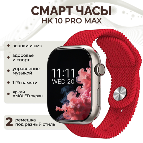 Смарт часы HK 10 pro max / Умные часы для iOS Android красные