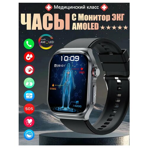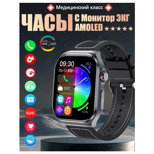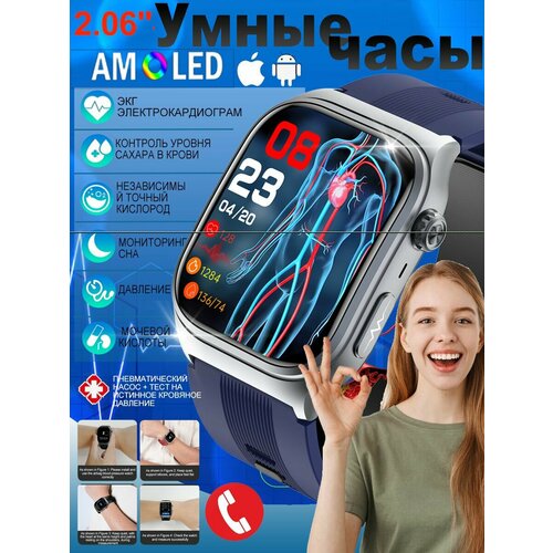 Умные часы с сенсорным экраном 2,06 дюйма и сверхтонкими подушками комфорта TPU с голосовой трансляцией артериального давления, Bluetooth - звонками, электрокардиограммой