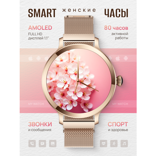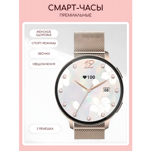 Смарт часы женские, умные наручные с функцией звонка для iOS и Android, водонепроницаемые