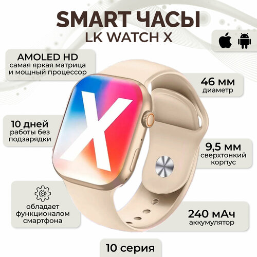 Смарт часы Х9 Ultra Smart Watch 2023 Умные часы IOS Android экран AMOLED бежевые
