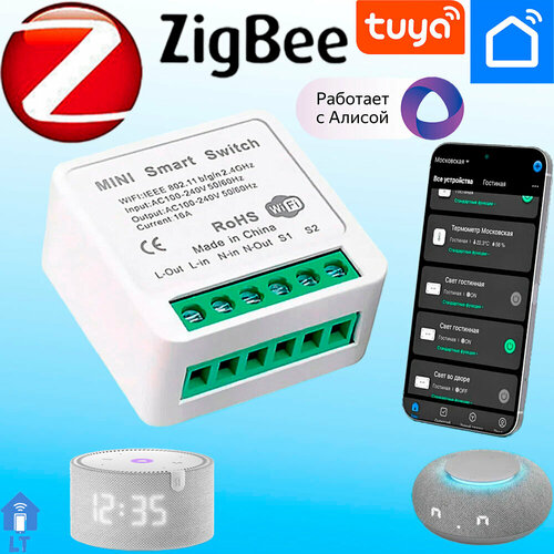 Реле Zigbee Tuya Mini, 16 A, 3520 W, IP20, для Умного дома с Алисой