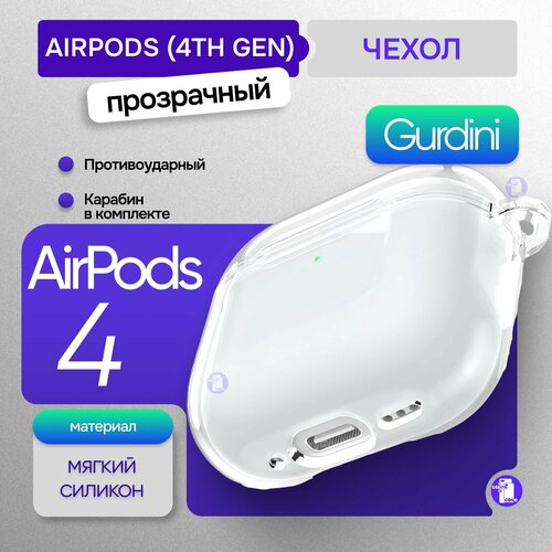 Защитный чехол Gurdini для AirPods 4 / чехол для эйрподс 4 прозрачный